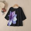 ZANZEA Women Casual Round Neck Long Sleeve Loose Print Blouse