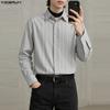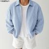 INCERUN Plus Size Men Casual Lapel Neck Long Sleeve Striped Loose Office Shirts
