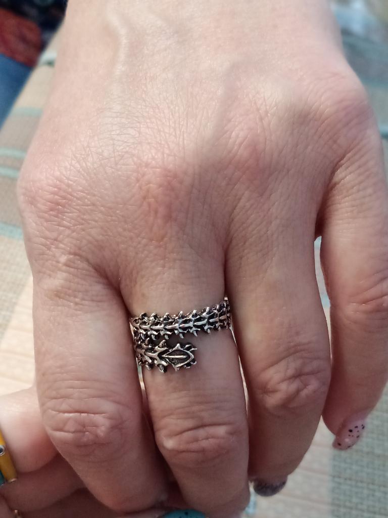 Nádherný prsten.Syn je spokojený,nepůsobí lacině.Velikost nastavitelná na různé prsty.