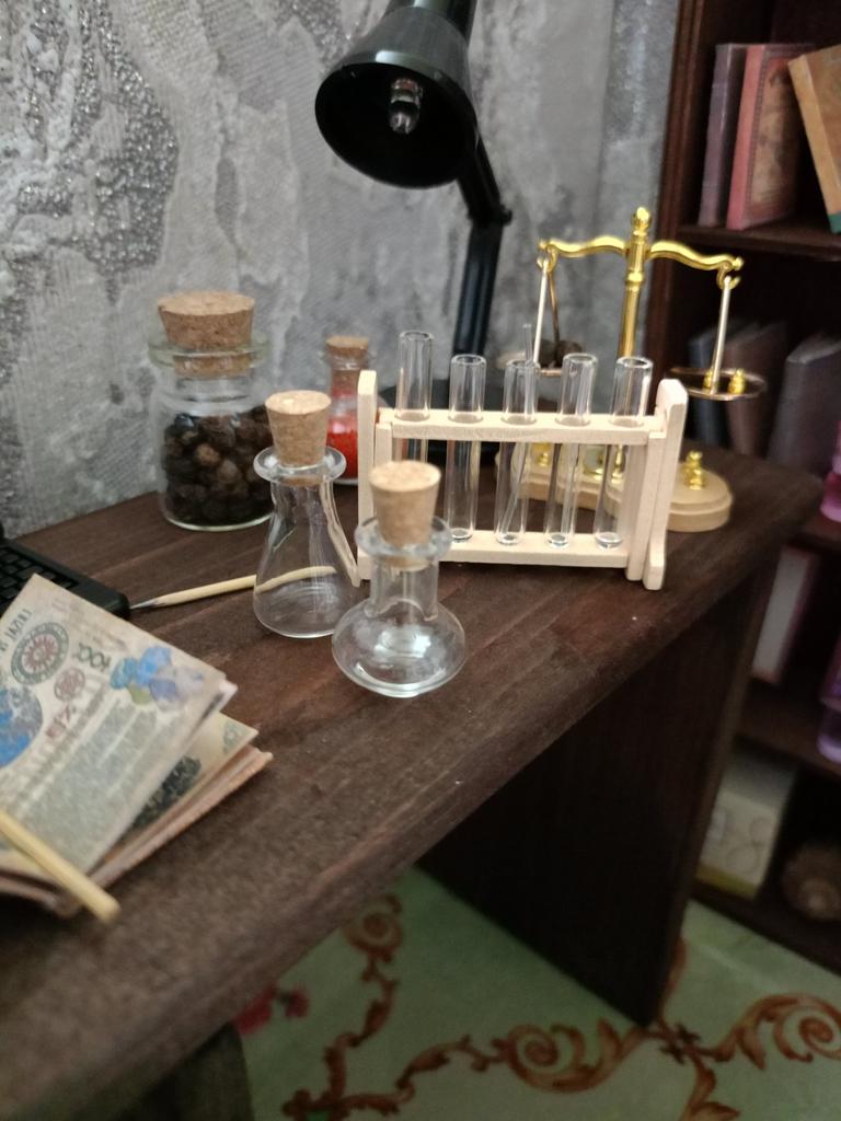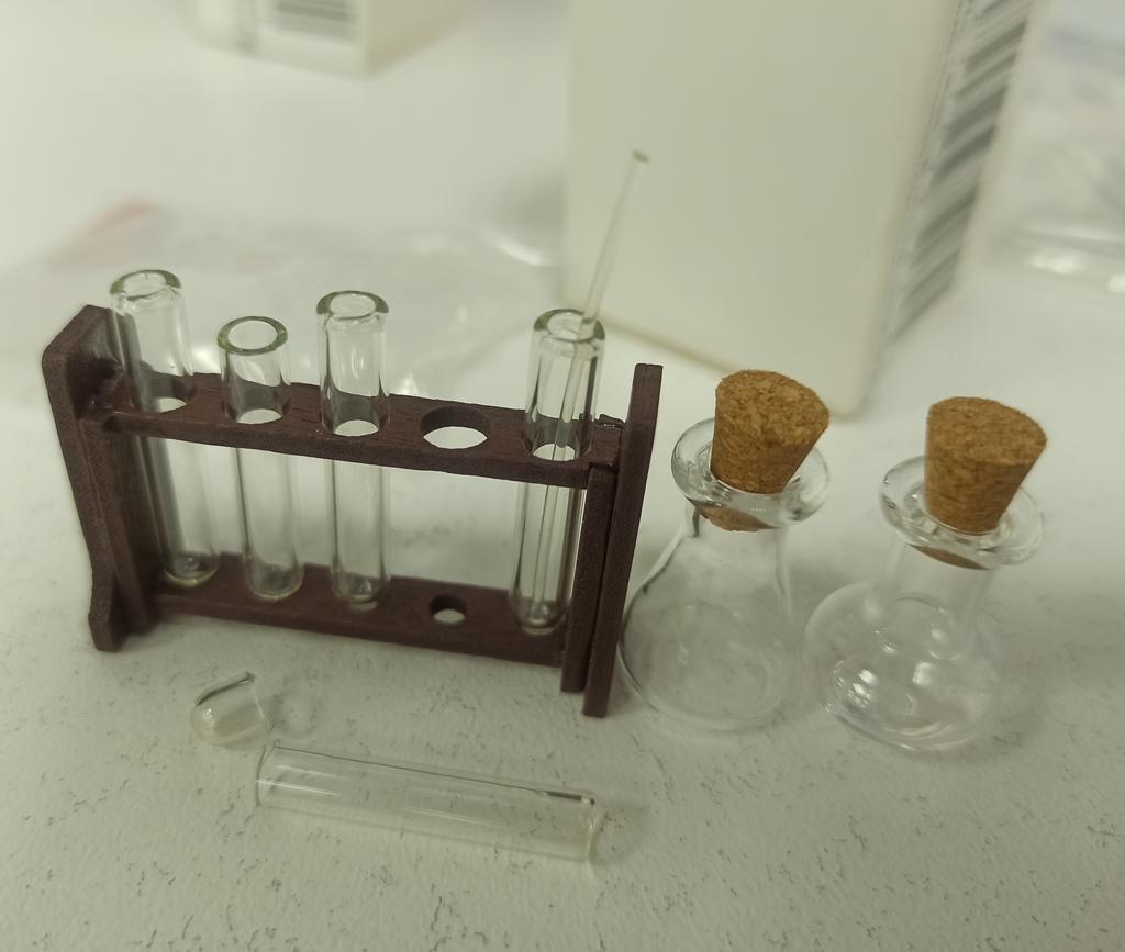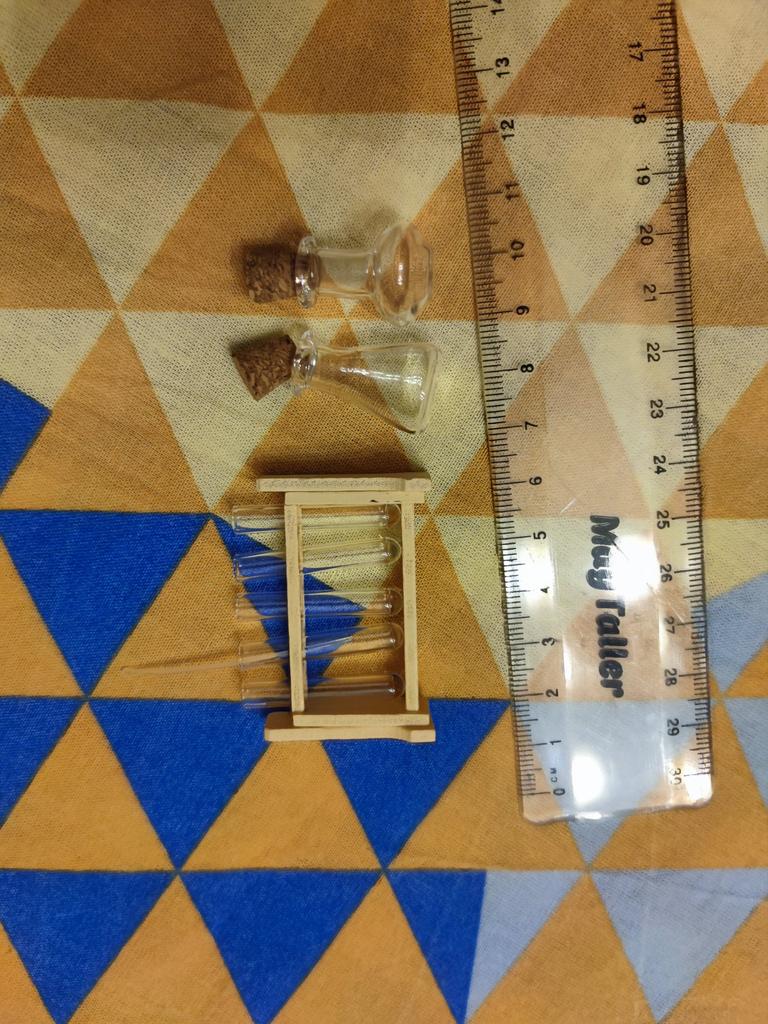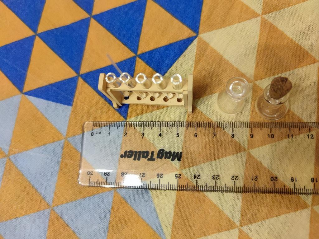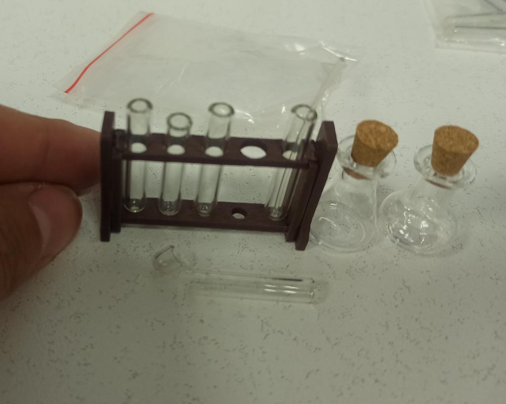 1 Sada 1:12 Miniaturní odměrka zkumavky Dollhouse pro panenky W/Rack Laboratory Dekor