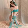 Modrá Erotická šifonová móda Obleky bez ramínek Ženy Košilka Pokrývka hlavy Střapec Sukně Dámské spodní prádlo Smyslné 3dílné sady 2024