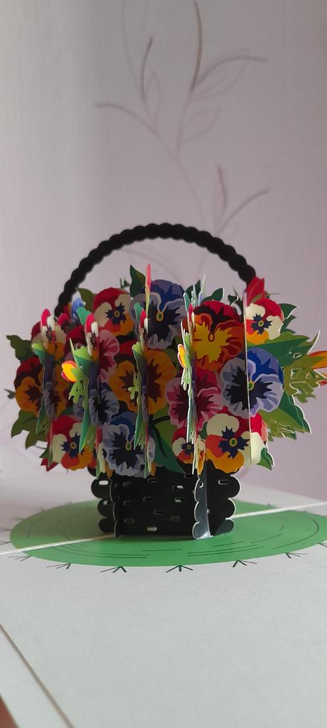 Karta s květinami, barevná karta s květinovým košíkem s obálkou, vyskakovací blahopřání pro matky svatba Valentýn výročí narozeniny Vánoce