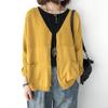 Jarní Dámské Cardigan Svetry Jednobarevné Volný Výstřih do V Dlouhý rukáv All Match Kapsy Kabáty