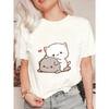 Roztomilá trička Mochi Peach Cat Milk Goma Cartoon pro unisex ženy Bavlněné Vintage tričko Tričko s kulatým výstřihem Trička s krátkým rukávem Velká velikost
