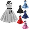 Women Vintage Dot Printing Sleeveless Bandage Evening Party Swing Classic Style Dress