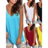 Dámské letní ležérní jednobarevné tričko s výstřihem do V, volné tričko bez rukávů, tílka