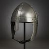 A genuine Norman medieval nasal helmet with aventail, made of 16 gauge steel.