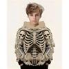 Chlapecká móda mikina s 3D potiskem s kostrou Ležérní pulovr ze směsi polyesteru a spandexu s kapsou Středně strečová pletenina Regular Fit s kapucí