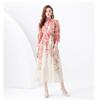Spring Autumn Women Stand Collar Lantern Sleeve Print Zipper Back Water Soluble Lace Party Dresses with Belt