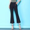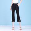 Spring and Summer Nine-point Pants Women's Black Thin Micro-flared Pants Women's High-waisted Lace Slit Flared Pants