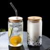 16oz Strawberry Bow Printed Drinking Glass Can With Bamboo Lid Straw Various Patterns Iced/Coffee Tumbler For Christmas Gift