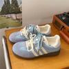 American retro leather color matching round head Agande training shoes women's soft leather versatile lace-up sports and leisure board shoes women