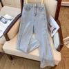 Women's Light Blue High-waist Loose Slim Drapery Versatile Narrow Version Wide-leg Pants