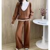 Elegantní úplety Kalhoty Soupravy Měkký svetr Cardigan Topy Oblek Úplet Široké nohavice Pantalones Conjunto Ležérní Pletené dvoudílné