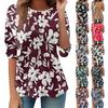 Women's Loose Casual Long Sleeve Top Round Neck Button Pull Stripe Prints T Shirt