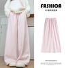 Pink High-Waist Fleece Lined Wide Leg Pants - Warm, Versatile, and Cozy for Autumn and Winter