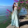 Elegant Blue-Green Maxi Dress: Flowy, Slimming, and Perfect for Vacations