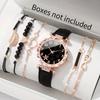 Ladies Diamond Dial Belt Quartz Watch Beaded Bracelet Set 6pcs/set