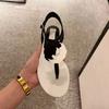 Sheepskin version~ New Xiaoxiangfeng camellia flip-flops women's one-character buckle belt leather color matching flat-toed sandals