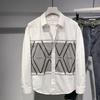 New Spring and Autumn Fashion Retro Geometric Pattern Contrast Panel Loose Casual Versatile Oversize Men's Shirt Trend