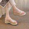 Set of toe pinch foot muffin thick bottom cool slippers women's summer wear 2025 new slope heel versatile fashion