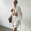 Fashion Wind Summer New Arrival Micro Transparent Long Sleeves Shirt Shorts Casual Suit Shirt and Shorts Set