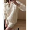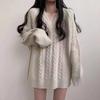 Autumn and winter V-neck mid-length twist ladies pullover sweater skirt, retro large size temperament dark gray ladies all-match sweater 6804#