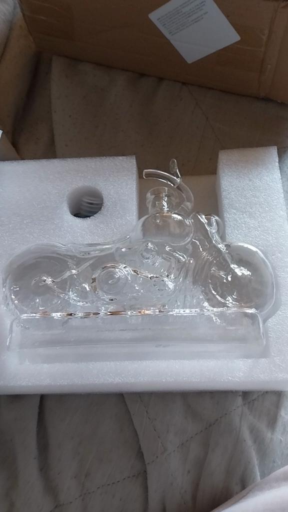 Ručně vyráběný design motocyklu: Pozvedněte výzdobu svého domova ručně vyrobenou skleněnou karafou ve tvaru motocyklu, která hladce spojuje funkčnost a umělecký dojem a stává se tak výrazným konverzačním kouskem pro milovníky whisky.