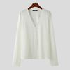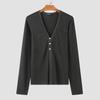 INCERUN Men V Neck Long Sleeve Buttons Rib Casual Fitted Tops T-shirts Undershirts