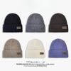 Coarse thread knitted hat children autumn and winter leather label letter wool hat big head circumference warm ear protection cold hat men