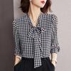 Fashionable Autumn and Winter Bow Puff Sleeve Tops for Women's Temperament Casual Contrasting Cardigan Long-sleeved Shirt