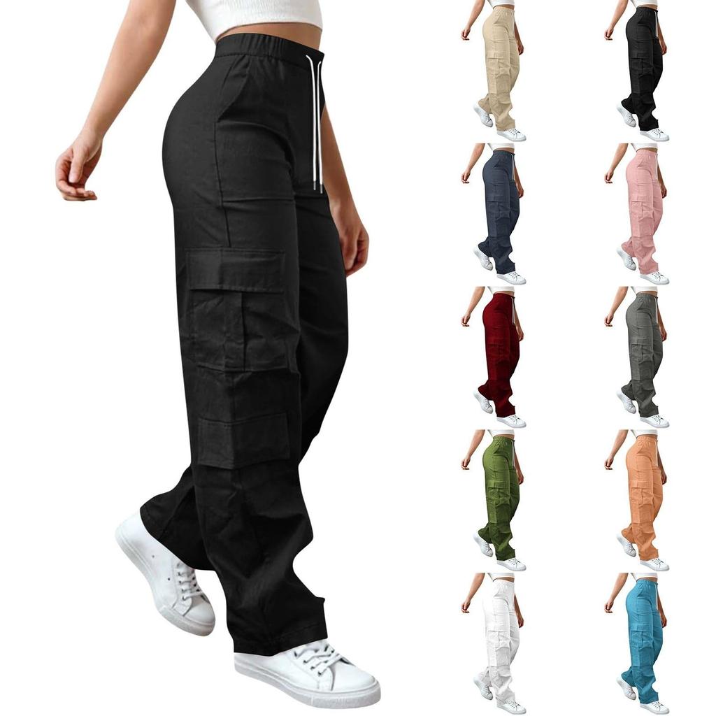 Dámské elastické cargo kalhoty s vysokým pasem, strečové, ležérní, se širokými nohavicemi, streetwear, parašutistické, turistické kalhoty s kapsami