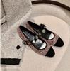 Yuanlitong 2025 spring new flat casual shoes women's retro metal word belt casual Mary Jane single shoes women