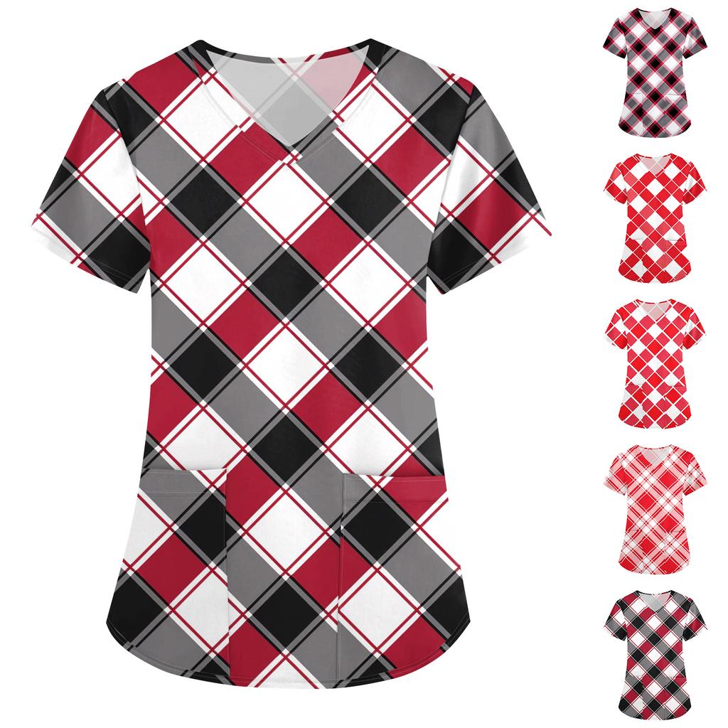 Dámský vánoční potisk volný výstřih do V kapsa krátký rukáv uniforma
