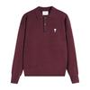 AMI New Polo Collar Knitted Sweater Jacquard Couple Wool Sweater Classic Small White Heart Embroidery