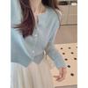 Vintage knitted cardigan top women's autumn and winter solid color pearl buckle loose sweater jacket commuter style