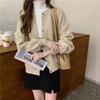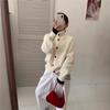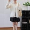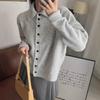 High-necked single-row wooden buckle plush knitted cardigan women's simple retro small fresh shoulder-plugged long-sleeved jacket