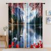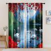 2pc, Curtains The picturesque forest_ Swan Lake_ seagulls_ fish_ and red blooming flower party Versatile 100% Polyester,Without