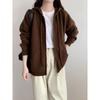 New solid color lazy wind hooded zipper knitted cardigan casual drawstring sweater thick coat women