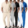 Men's Solid Color Textured Short Sleeved Trousers Suit Casual Sports Short Sleeved Trousers Suit