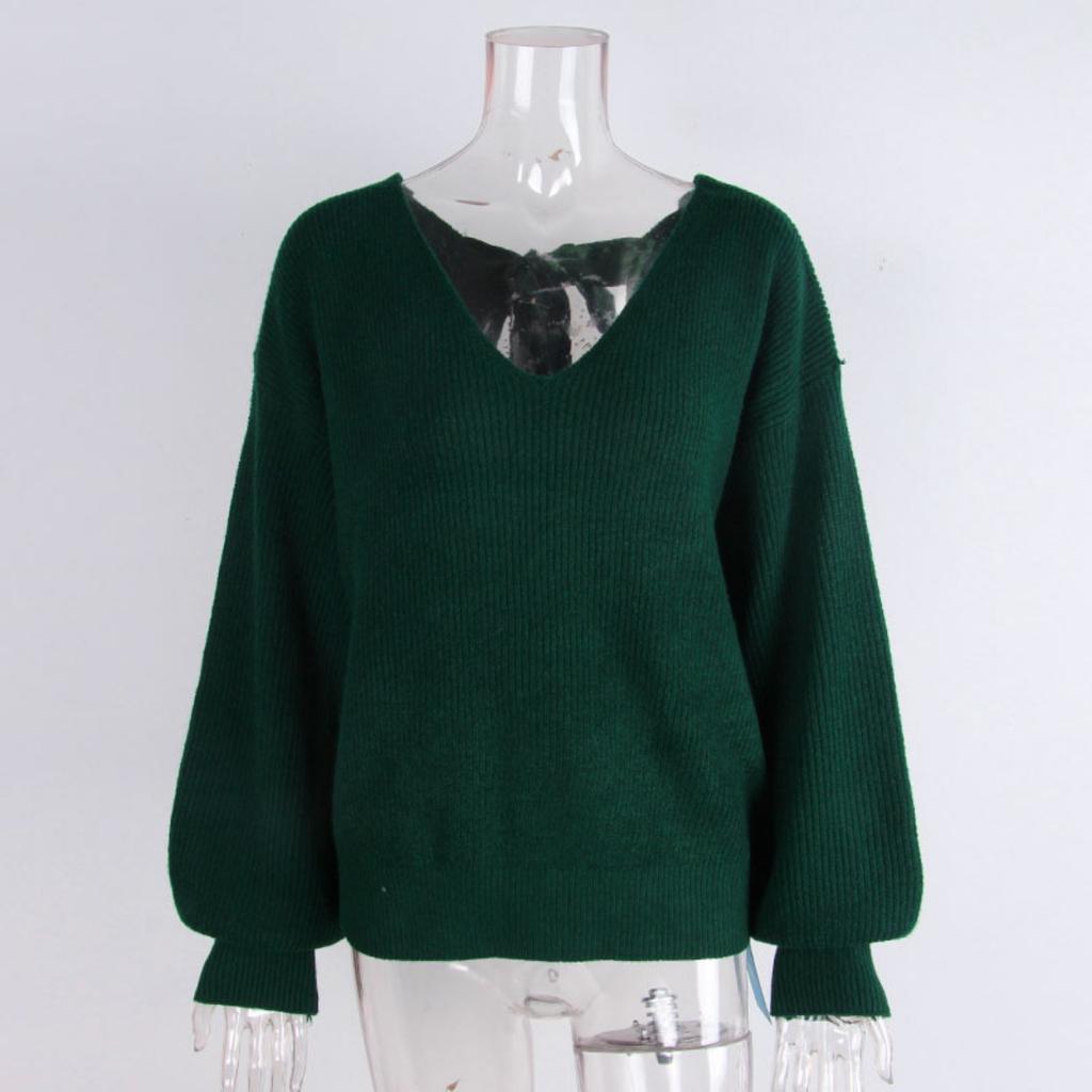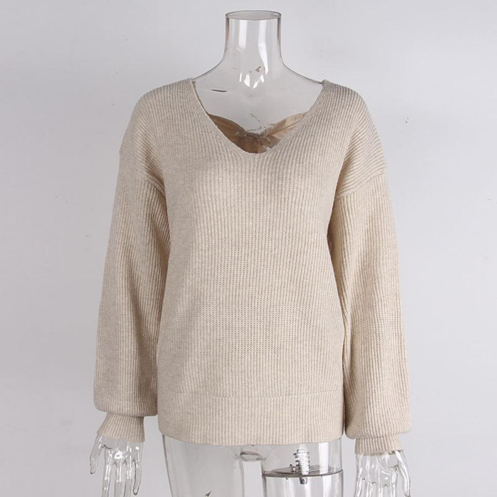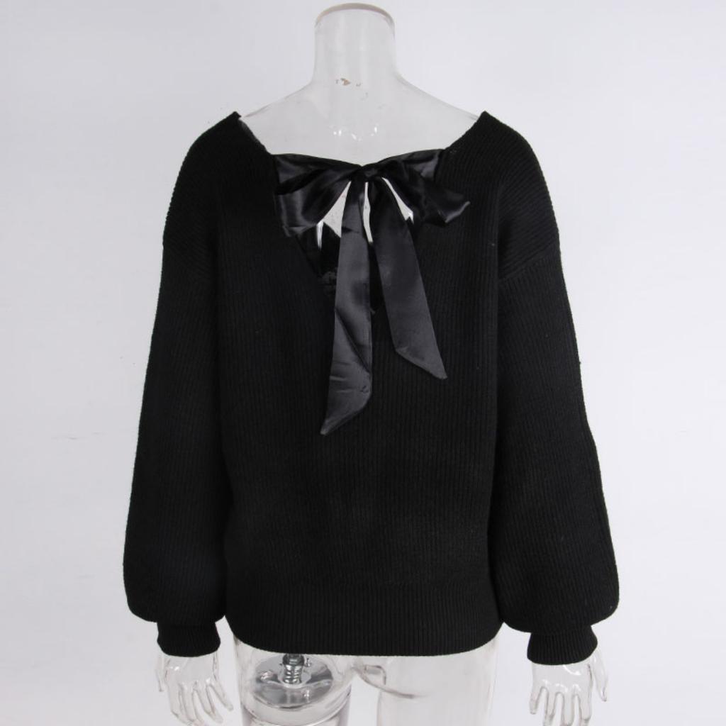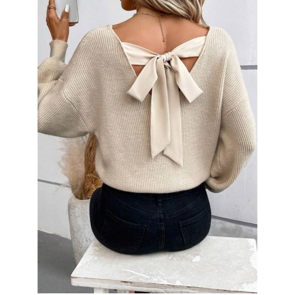 Dámský svetr s výstřihem do V, jednobarevný, podzimní nový styl, s dlouhým rukávem, ležérní volný top s mašlí pro ženy