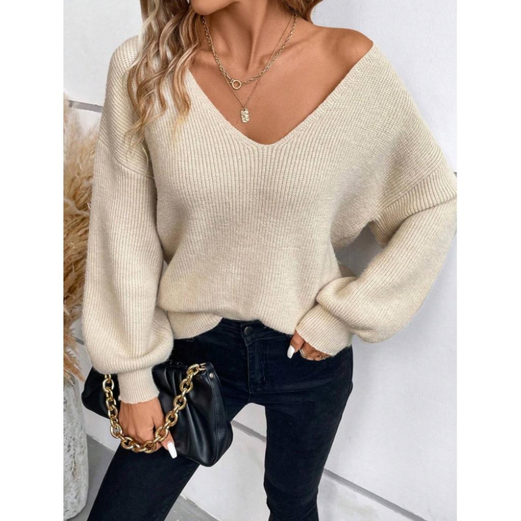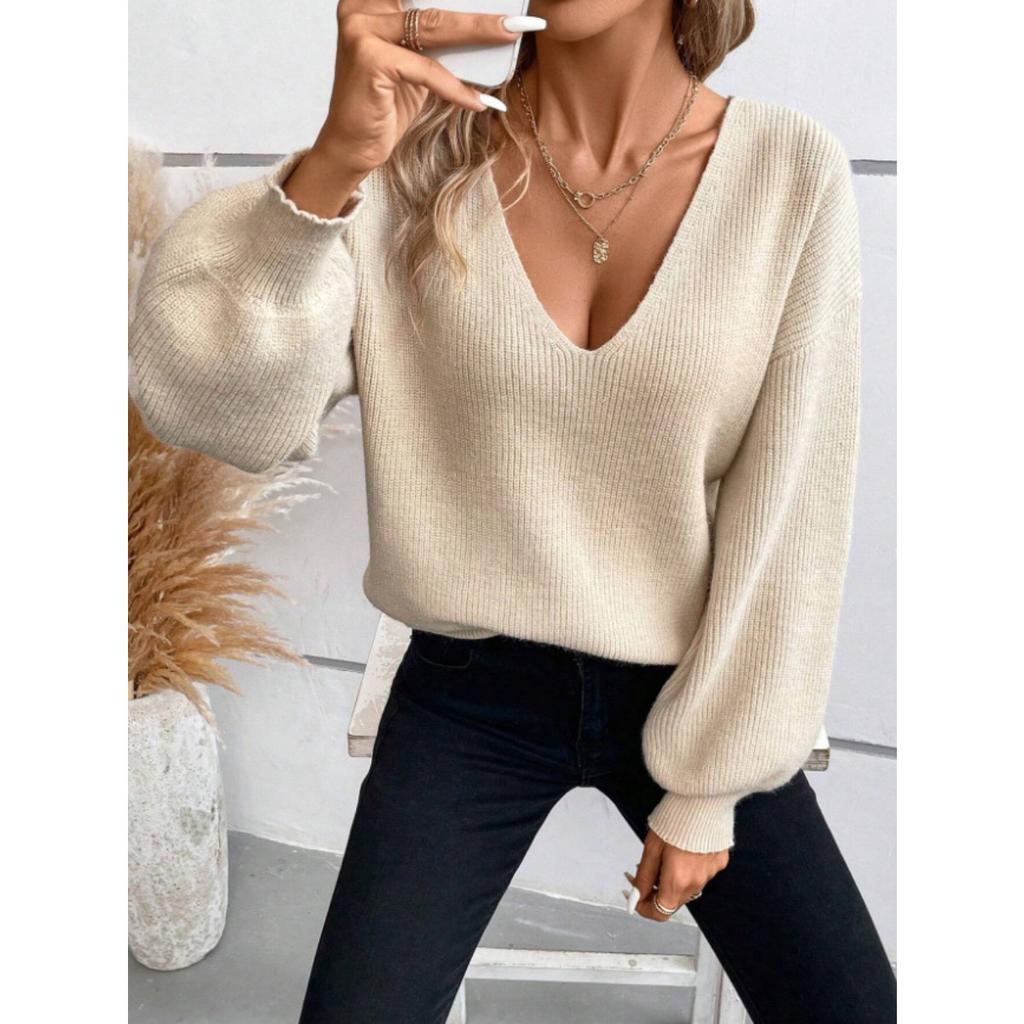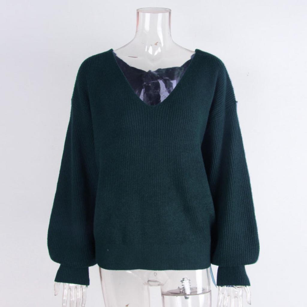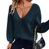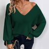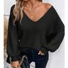 Dámský svetr s výstřihem do V, jednobarevný, podzimní nový styl, s dlouhým rukávem, ležérní volný top s mašlí pro ženy