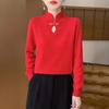 Women Sweater Mandarin Collar Pullover Chinese Style Knitwear Retro Elegant Long Sleeve Clothing Tops