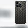 For iPhone 16 Plus Case Woven Texture Leather+PC+TPU Hybrid Phone Cover