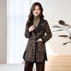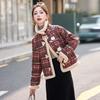 Women's Winter Slim-Fit Contrast Collar Faux Shearling Plaid Jacket Chic Short-Length Blazer with Suit Collar