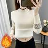 Women's Autumn Winter Half-High Neck Sweater with Integrated Fleece Fabric - Lace-Trimmed Knit Base Layer Warm Thickened Style