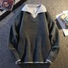 New Autumn and Winter Fake Two-piece Shirt Collar Sweater Men Knitted Couple Coat Men Pullover Versatile Top