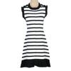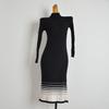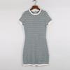 Fashion Style New Arrival Contrast Color Striped Mock-Neck Short Sleeve Knitting Dress Women's Waist-Tight Slim Looking Sheath A- line Skirt