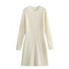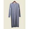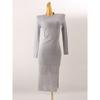 2025 Cotton Korean Style round Neck Sheath Long sleeve dress Slim fit Slimming Simple Light Gray Mid-Length Base Skirt