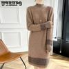 Lace Half Turtleneck Sweater Solid Color Loose Pullover for Women Casual Long-sleeved Knitted Dress for Autumn and Winter